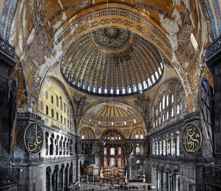Собор Святой Софии — построен в 532- 537 годах в столице Византии, продолжительное время был самым большим храмом, в себе сочетает христианские и исламские традиции, а высота купола составляет 56 метров. Его купол поддерживается арками и сводами, он стал прототипом для многих европейских храмов. Византийские мастера разработали сложные системы перекрытий, которые были позднее адаптированы в готическом стиле. А геометрические узоры на стенах очень напоминают декоративные элементы в Готике.