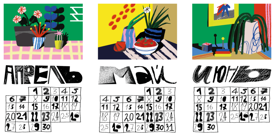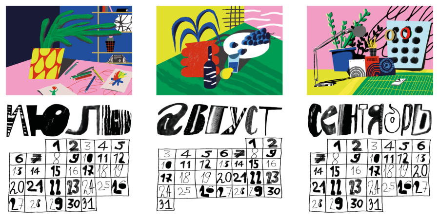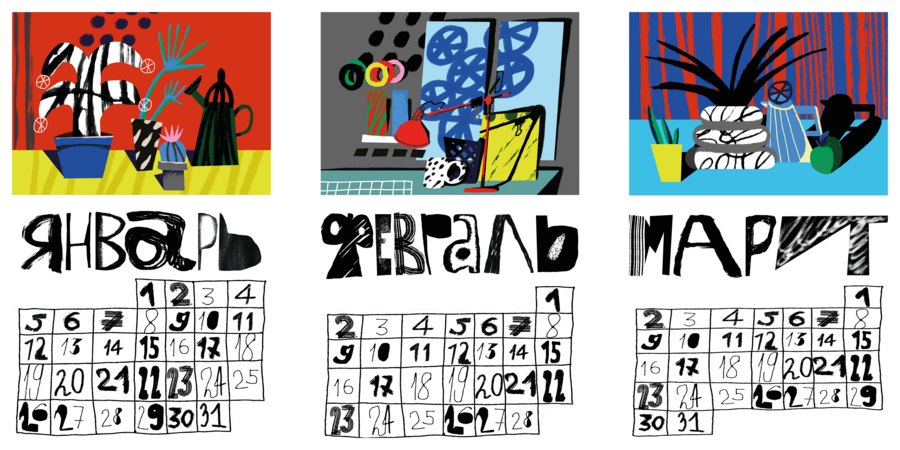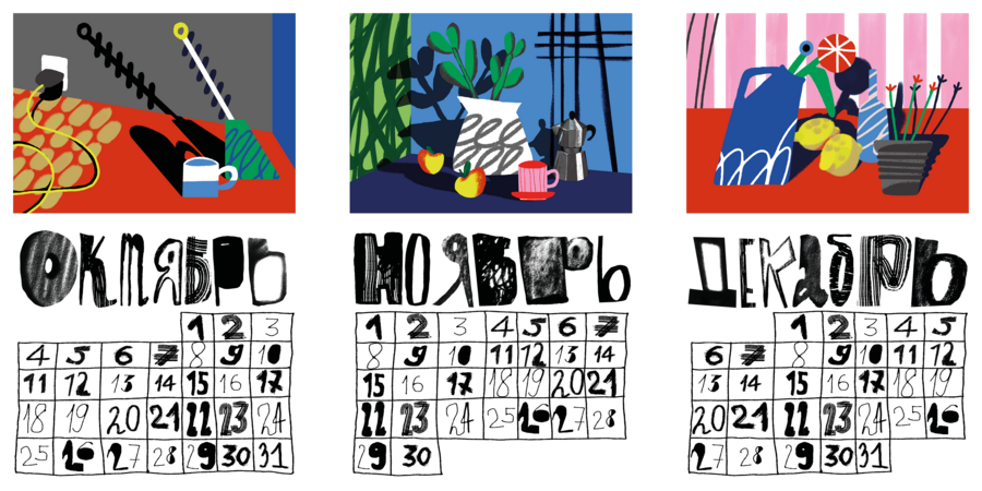 Иллюстрированный календарь, где каждый месяц — новый натюрморт. Разработан авторский леттеринг под стиль проекта.