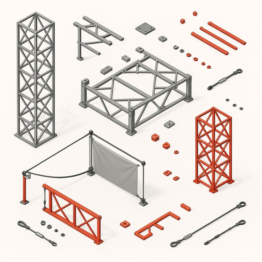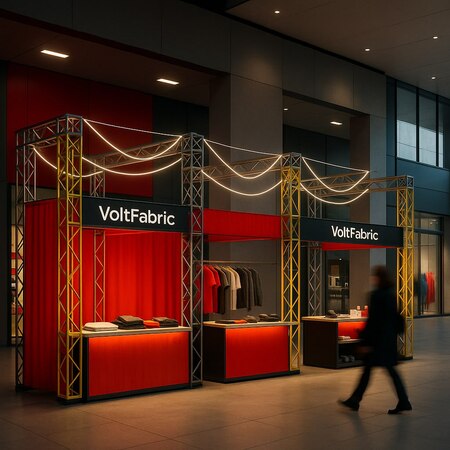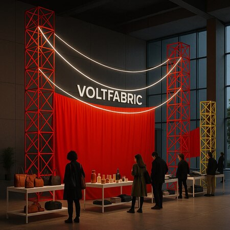 VoltFabric — модульные светотканевые инсталляции из стальных ферм и тросов. Монтаж на площадке за 6–12 часов без тяжелой техники, полностью реверсивно и масштабируется под объект. Эстетика русского конструктивизма; интеграция подсветки, навигации, брендинга и временной торговли. ИИ-сервис по фото площадки генерирует визуальные концепты (фасады, сцены, зоны), помогает выбрать конфигурацию и смету.
