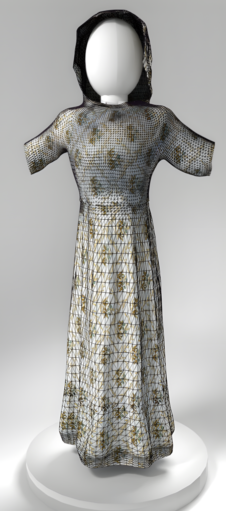 В более поздний период, в 1990-е годы, Барафф и Виткин (1998) представили методику симуляции ткани на основе треугольных элементов с применением неявной схемы интегрирования [7]. Данная техника позволила осуществлять быструю симуляцию относительно сложных моделей одежды. Предложенный метод продолжает оставаться фундаментальной основой для многих современных алгоритмов, используемых в настоящее время.