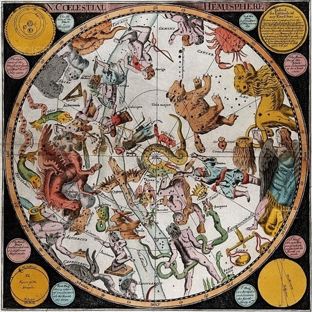 Созвездия Северного полушария, гравюра, Джеймс Барлоу, 1790. Northern Coelestial Panisphere