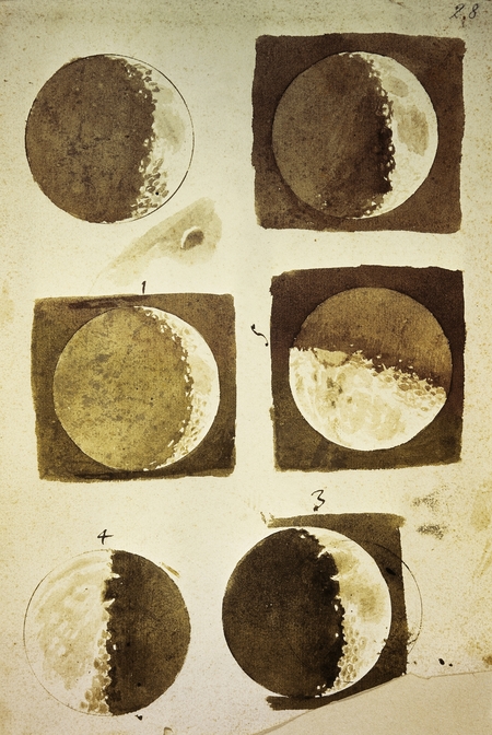 Слева: первый телескоп Галилео Галилея, 1609 год [20]; справа: зарисовки Галилео Галилея, 1609 год [21]