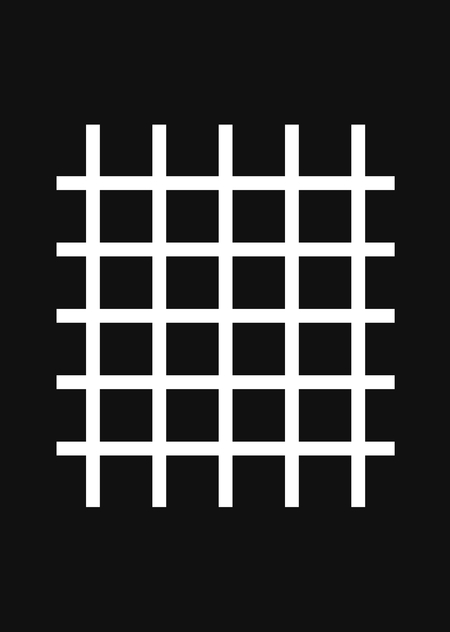 На пересечениях сетки кажутся видимыми тёмные точки, хотя на самом деле их нет. Это происходит потому, что чувствительность рецепторов сетчатки распределяется неравномерно: глаз усиливает контраст между светлым и тёмным, создавая иллюзорные «мигания».