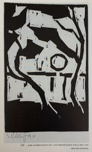 Карл Шмидт-Ротлуф, Coucher de soleil, 1910 Карл Шмидт-Ротлуф, woodcut, blocked/printed, 1916