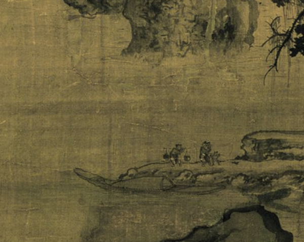 Горы в китайской культуре ассоциируются с раем, чем-то возвышенным. Рассматривая детали, мы видим, насколько люди маленькие на таком большом полотне. Человек в них мал и является частью, но не хозяином природы.