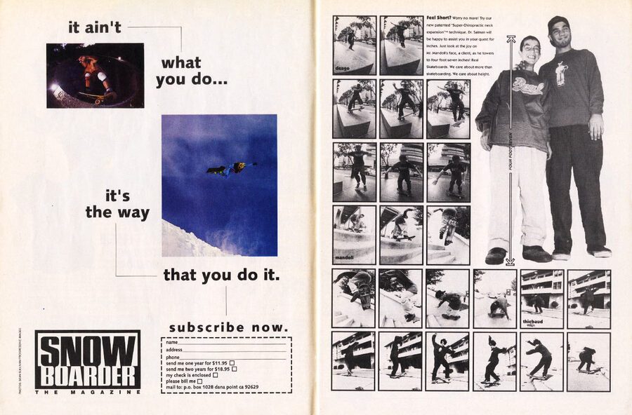 1.Журнала Snowboarder, реклама 2.Teenage Invisible Man: Simon Woodstock 3.Fashion Monkeys, реклама Grind King